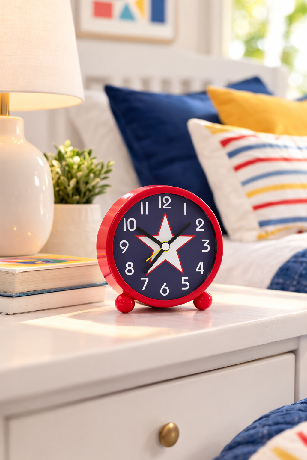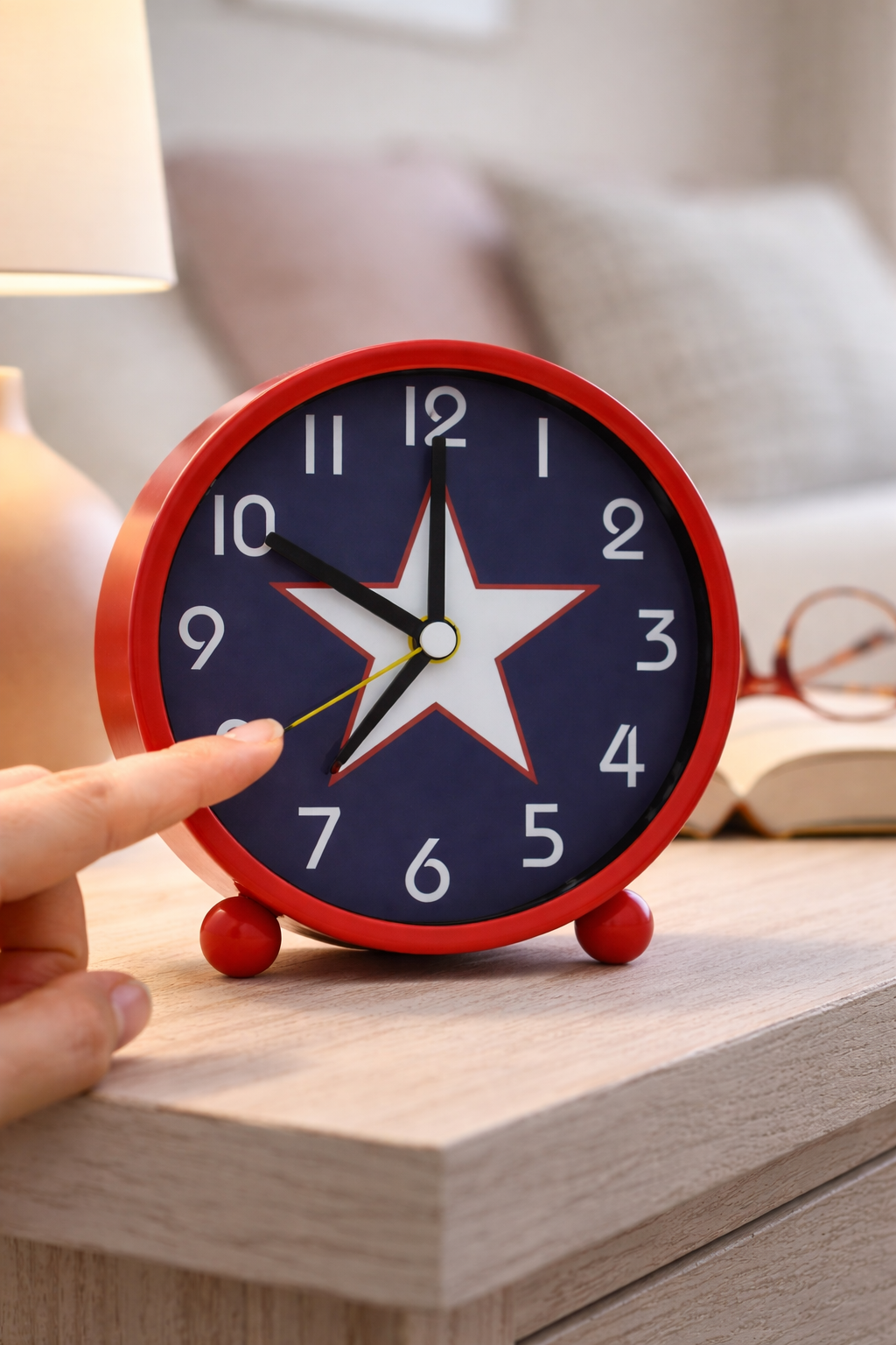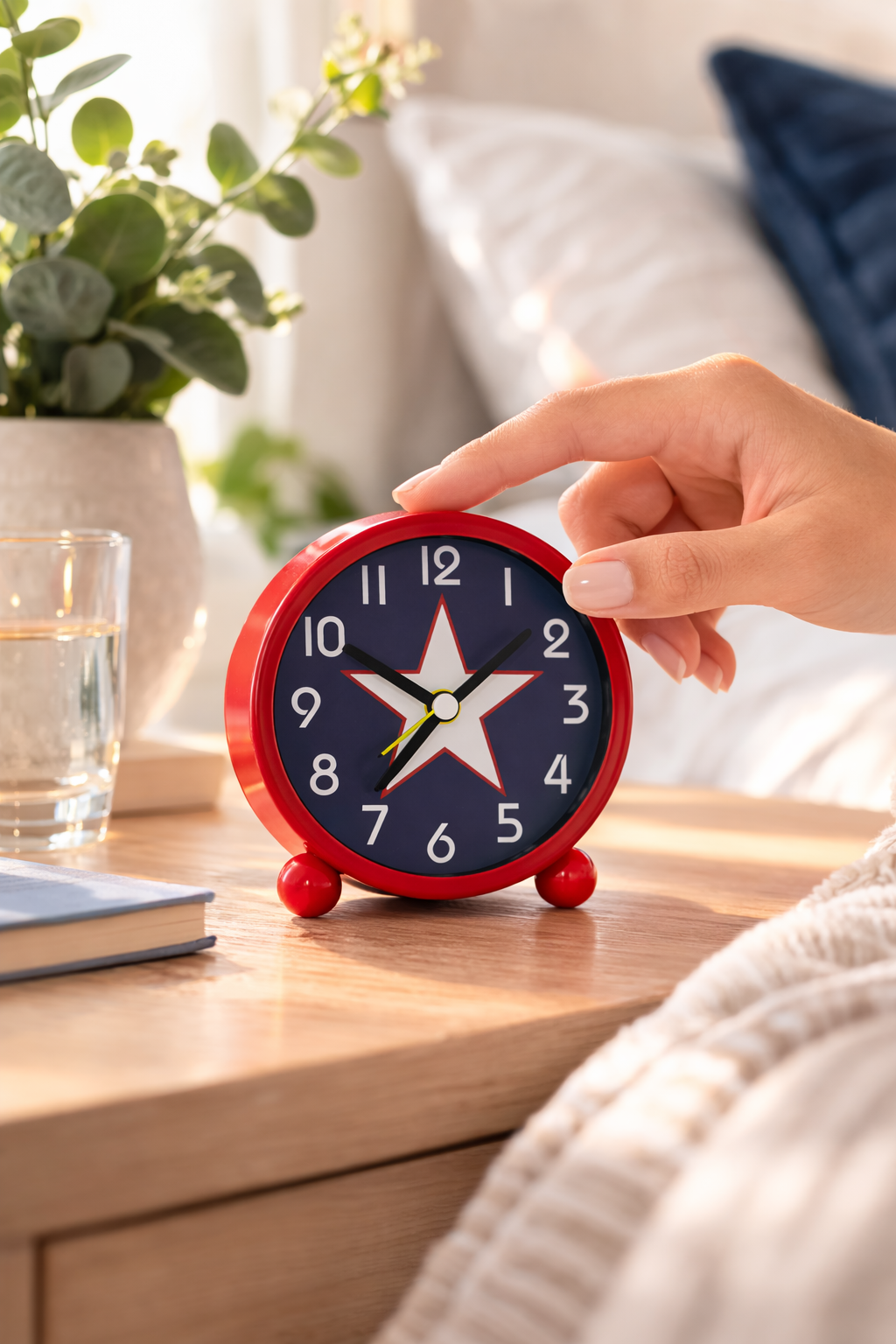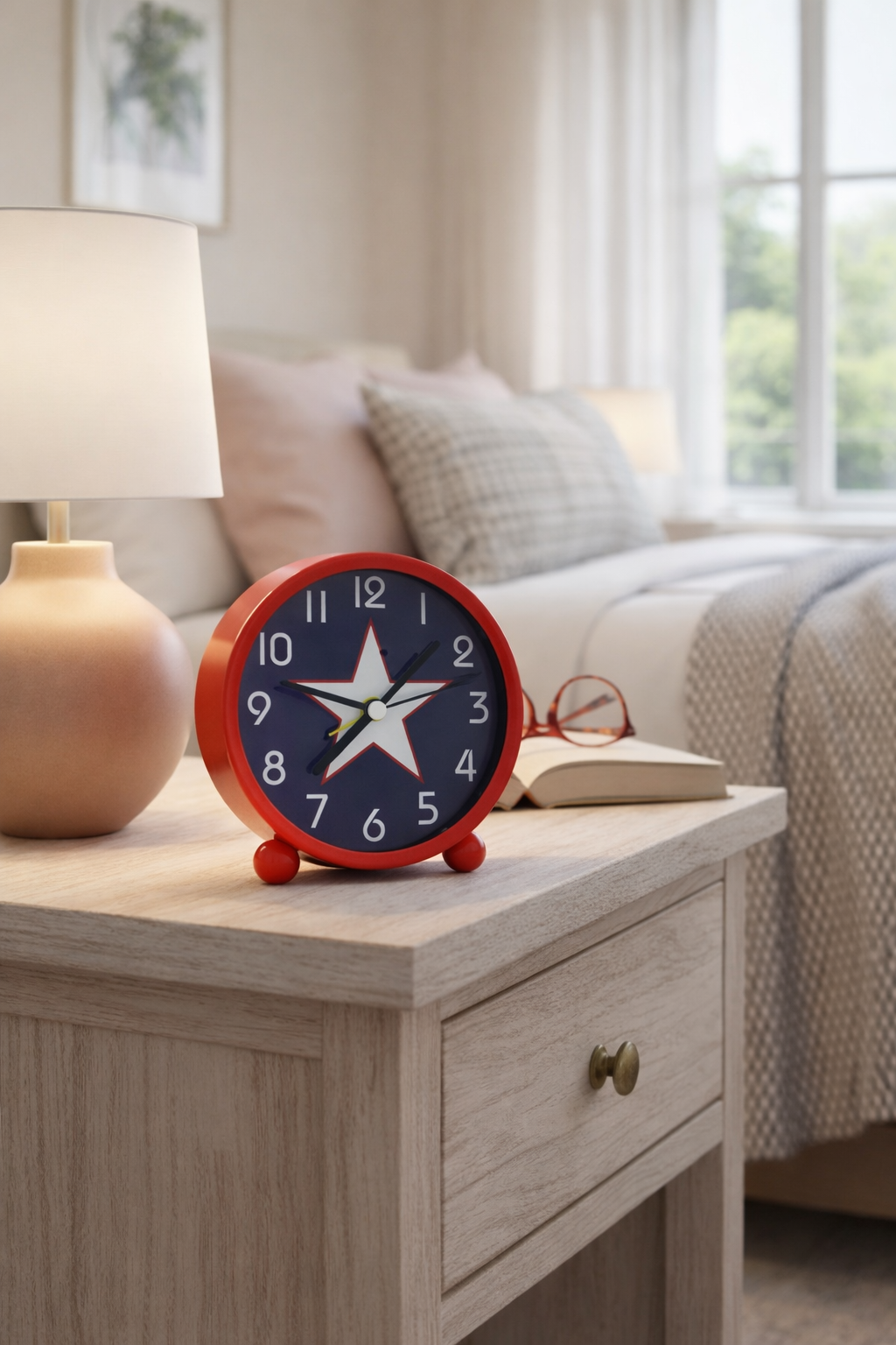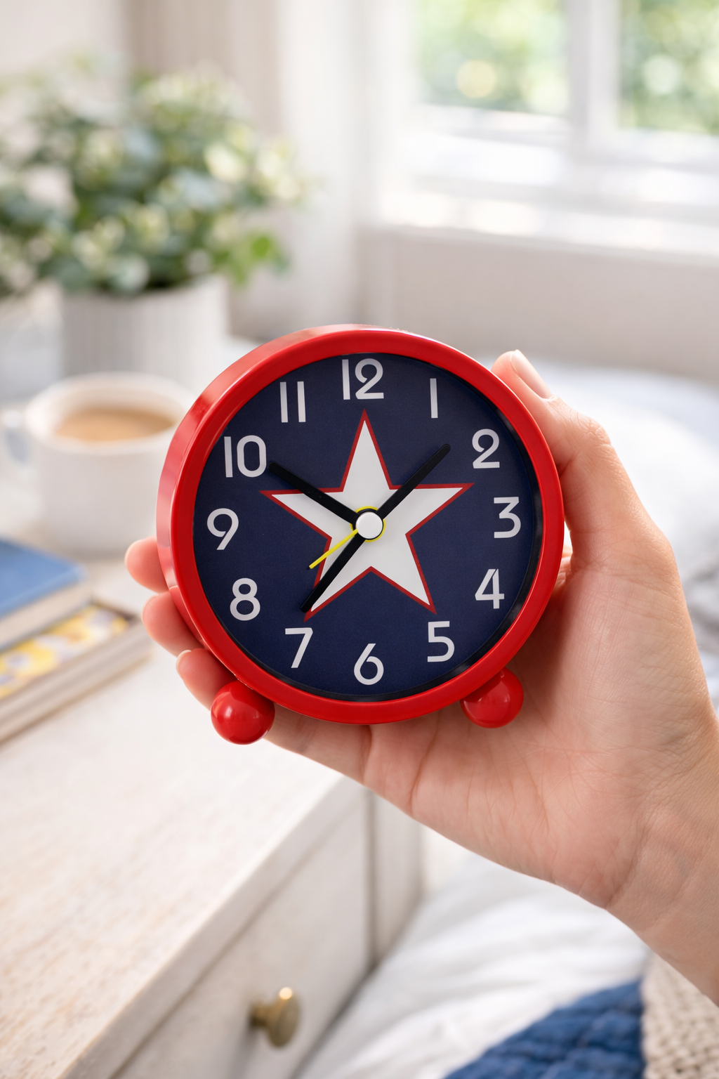 Its small footprint fits neatly on bedside tables while remaining easy to read and simple to use.