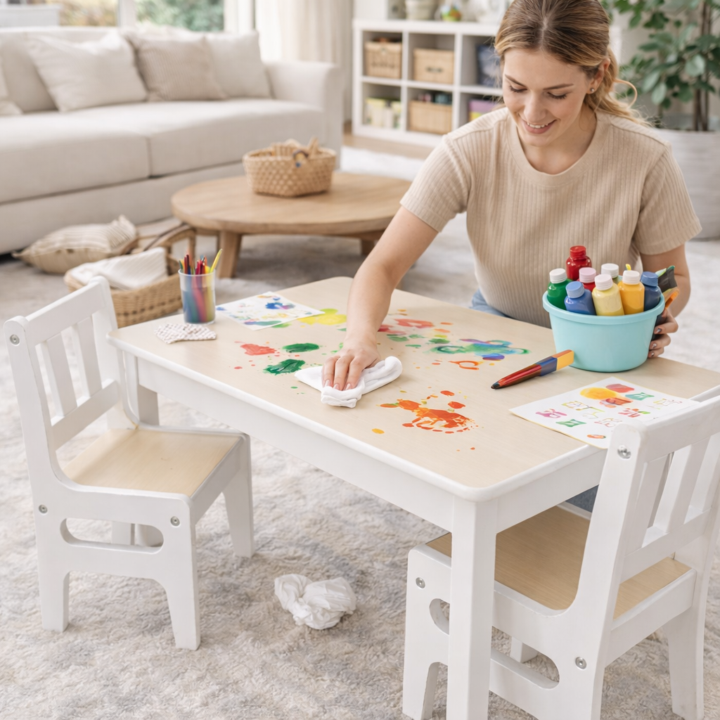 That makes this set a practical fit for calm play spaces, shared living areas and busy family homes. It is designed to support the kinds of everyday moments parents actually need furniture for, from colouring before lunch to stickers, blocks, puzzles and simple creative projects in the afternoon.