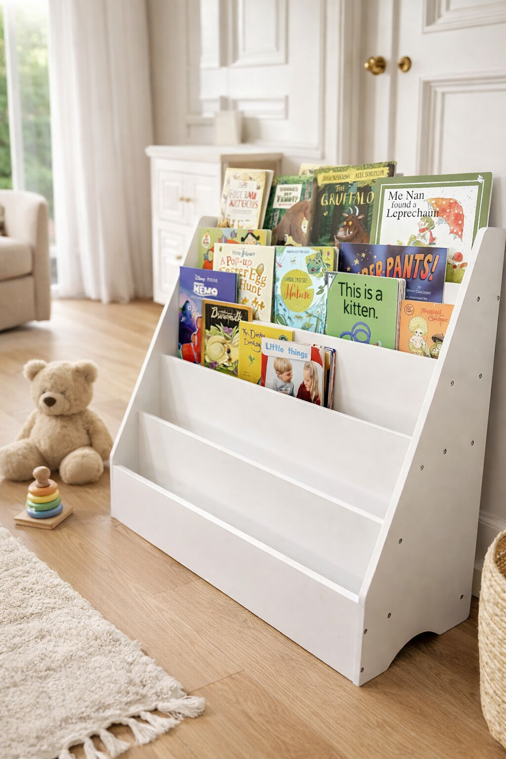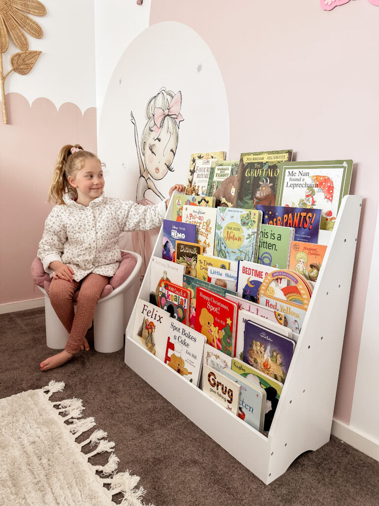 Little Nation bookshelf has a perfect modern furniture look to add style in your kid's bedroom, study room, playroom, nursery, living room and more!