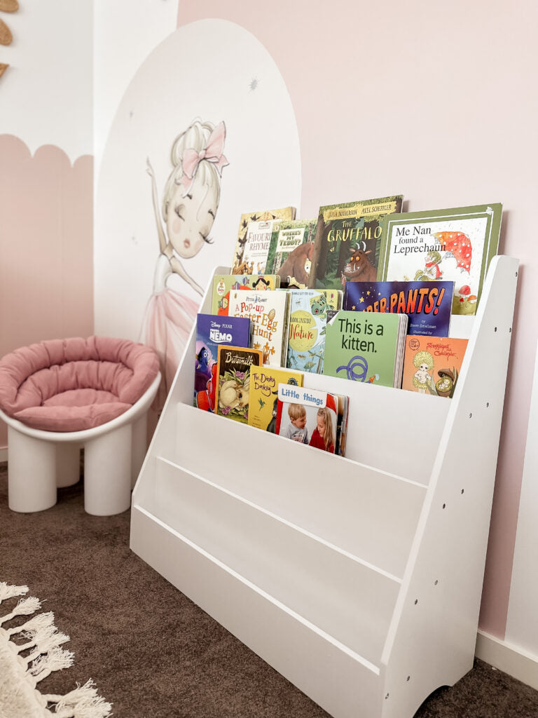 Bookshelf rack has 5 layers that can hold books of any size. A perfect way to keep your kids book all organized in one area of the room. No more clutter!