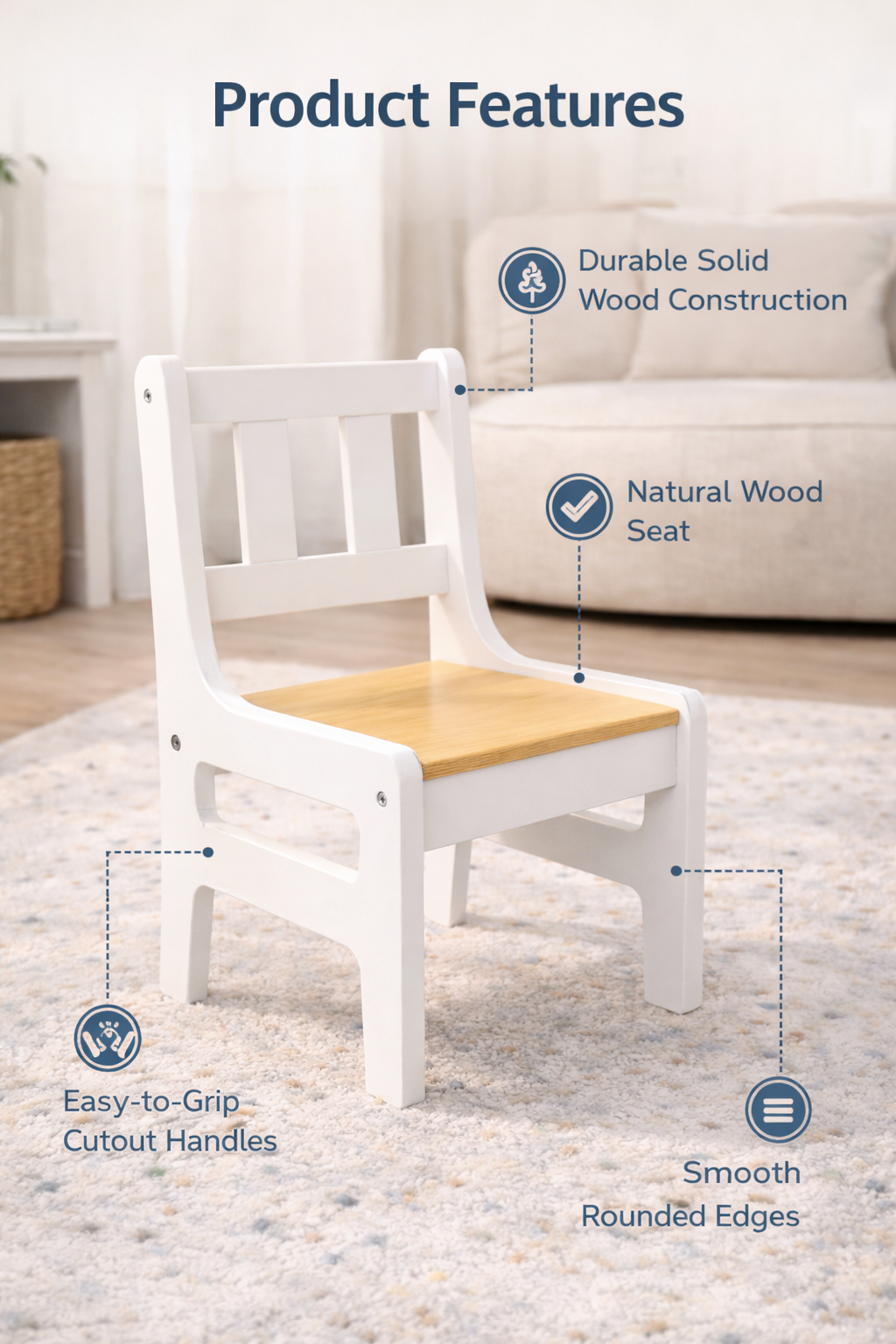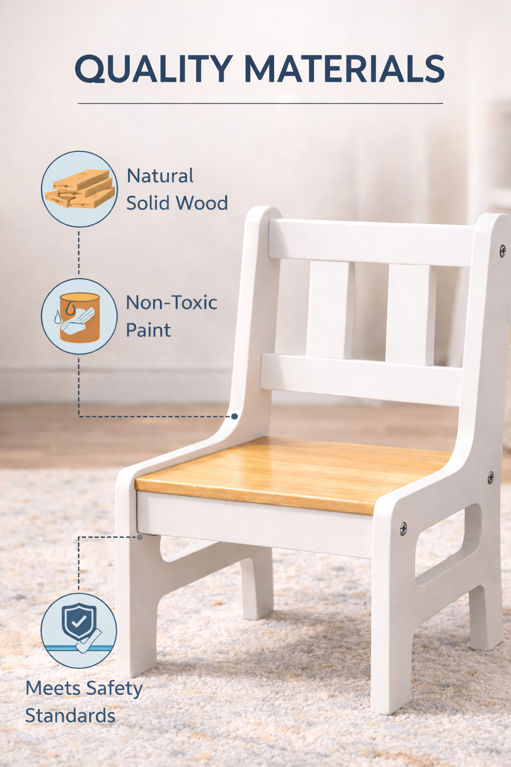 Constructed of durable wood and each chair can hold up to 53 lbs. Easy-to-clean surfaces for long-lasting use and easy upkeep.