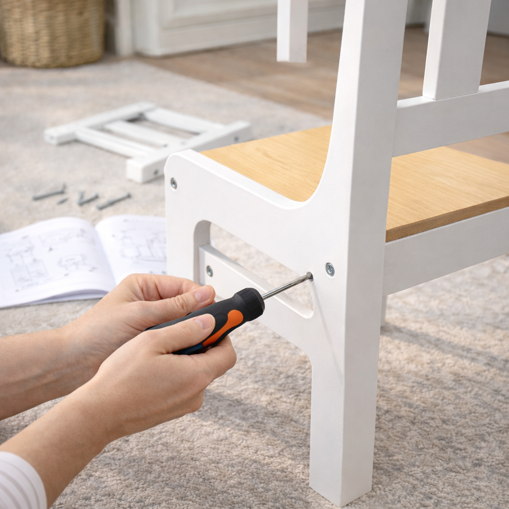 MDF&Solid Wood Non-toxic and environmental friendly paint Chair dimensionÔºö27*27*52 cm Weight Capacity 50 kgs / 110 lbs Needs Assembly